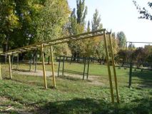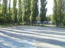 С правой стороны к школе примыкает спортплощадка. Здесь есть все для занятий спортом на свежем воздухе в хорошую погоду: полоса препятствий, футбольное поле, волейбольная и баскетбольная площадки.